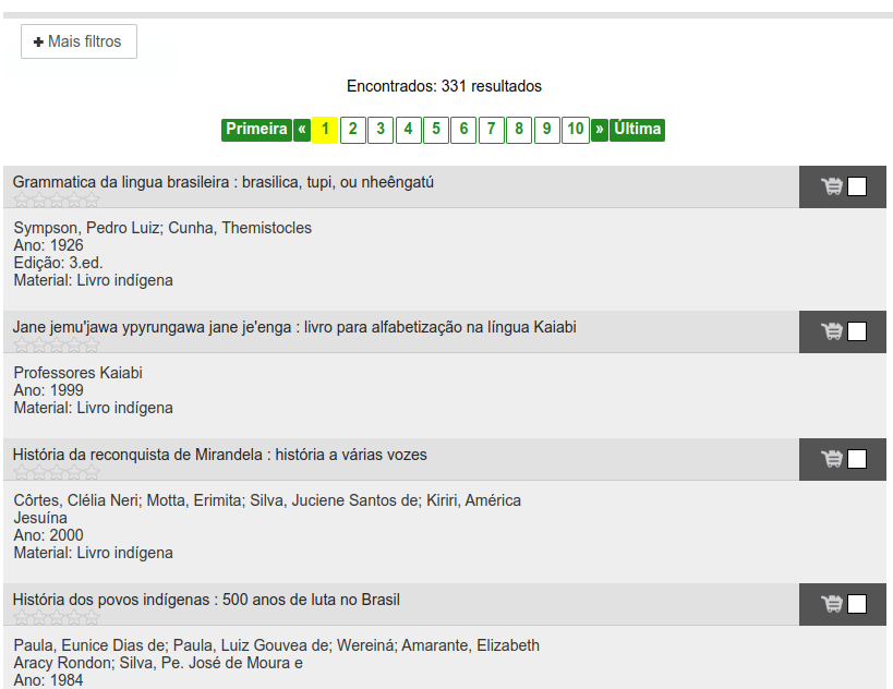 Escolha a pesquisa avançada e em tipo de material selecione Livro Indígena